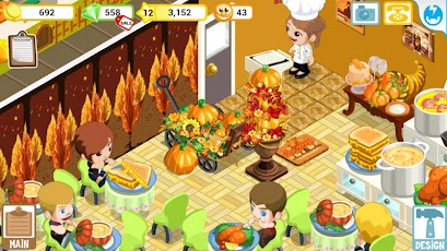 Decora tu Restaurant Story para acción de gracias y comparte con tus amigos! Impresione a sus clientes con diversas decoraciones y sabrosas delicias! Ahora con recetas temáticas de acción de gracias, y decoraciones.